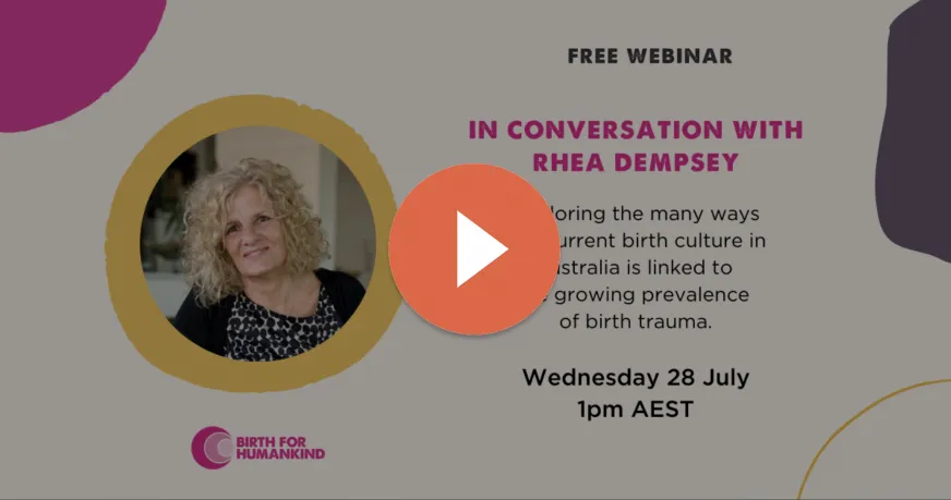 In recognition of Birth Trauma Awareness Week (19-24th July 2021), Birth for Humankind is thrilled to host another conversation with Rhea Dempsey. Rhea is a highly sought-after and much-loved childbirth educator, counsellor, speaker, author and birth attendant who has experienced thousands of births. (Dempsey, Rhea. Beyond the Birth Plan.)Over one hour, Rhea delves deep into the concept of pain during birth and explore the ways our current birth culture is linked to the growing prevalence of birth trauma. The conversation also acknowledges the unique perspective/challenges of trauma and birth for women experiencing social and financial disadvantage.